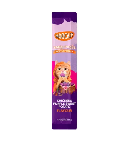 Alimento húmedo lickable sabor pollo y patata morada dulce.